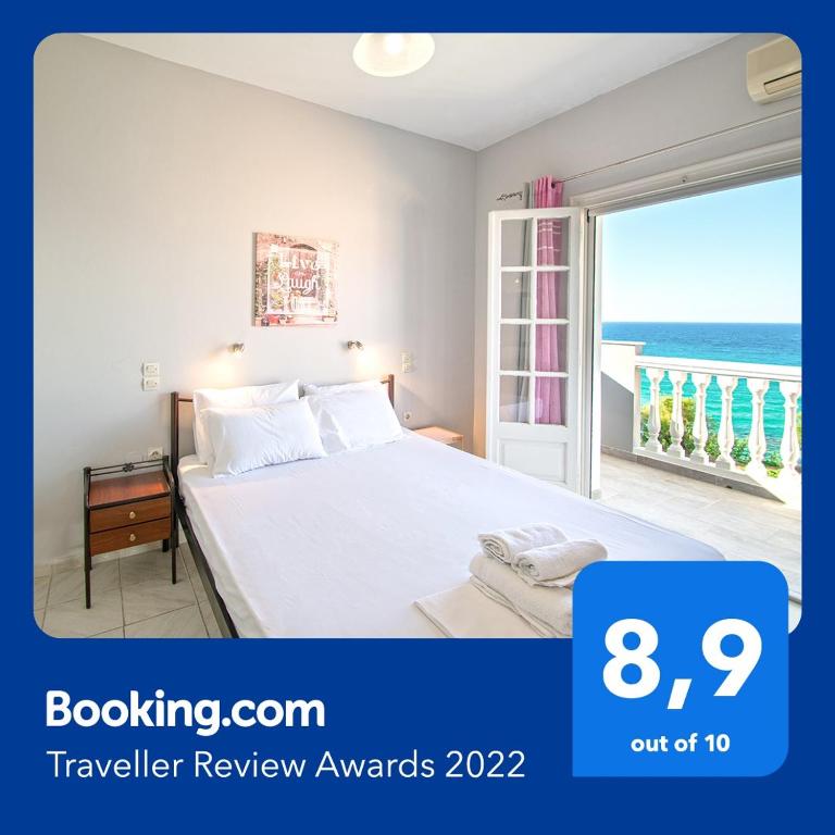 The comfortable studios have ceiling fans, refrigerator and well equipped kitchen. All rooms have private balconies with view of the clear blue waters of the Ionian Sea and the pool.
