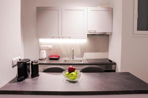 The air-conditioned apartment is composed of 1 separate bedroom, a living room, a fully equipped kitchen, and 1 bathroom.